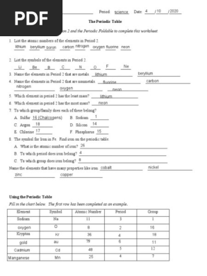 Periodic table worksheet answer key pdf. We did not find results for: Maybe you would like to learn more about one of these? Check spelling or type a new query.